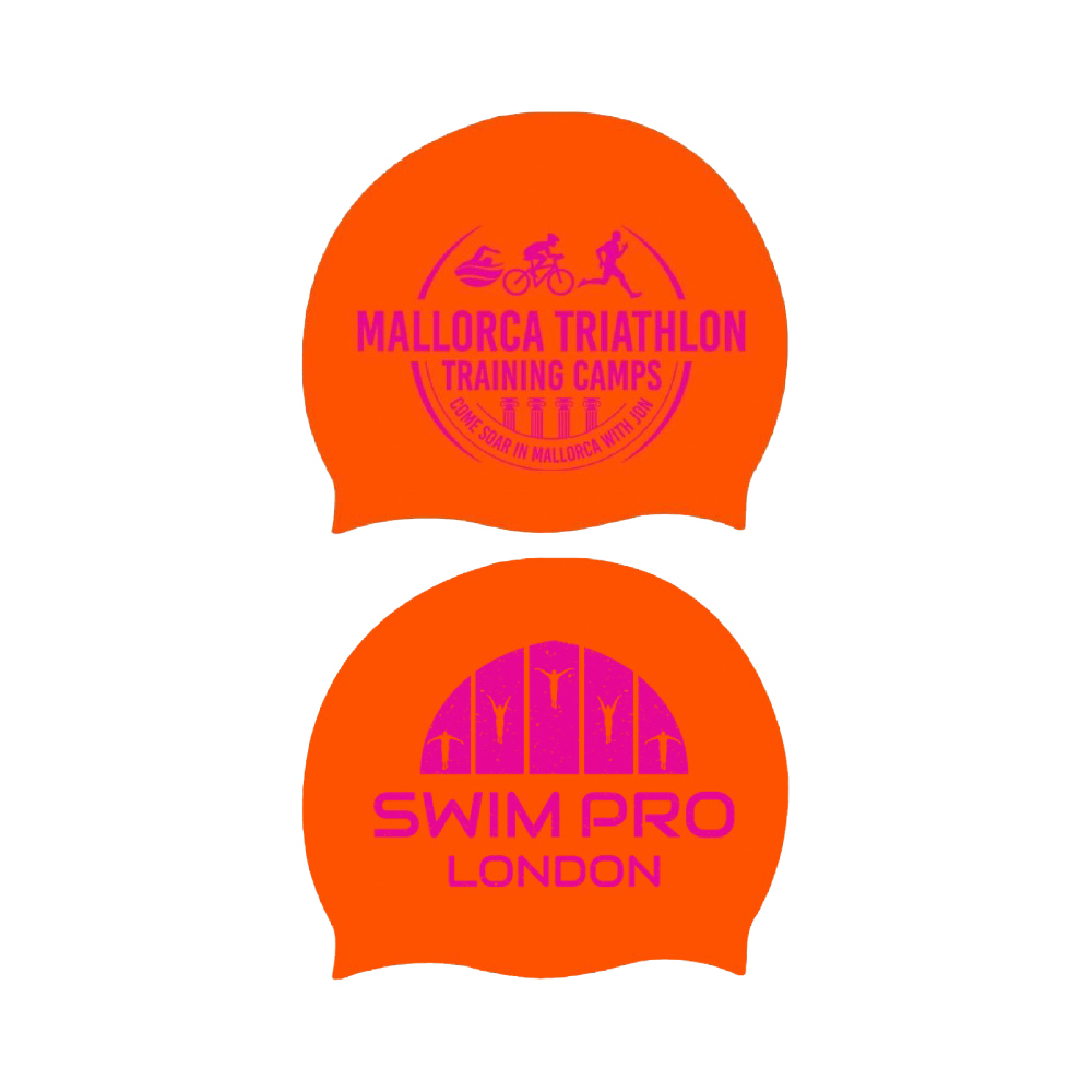 Our signature Mallorca Sunburst Orange swim cap — the exact colour you see rising over Alcudia Bay on our morning sea swims. Flat-moulded, premium silicone for a sleek, low-drag fit with exceptional durability and comfort. Bright, bold, and unmistakably MTTC. Designed to stand out in the pack and built for athletes who train with intent.